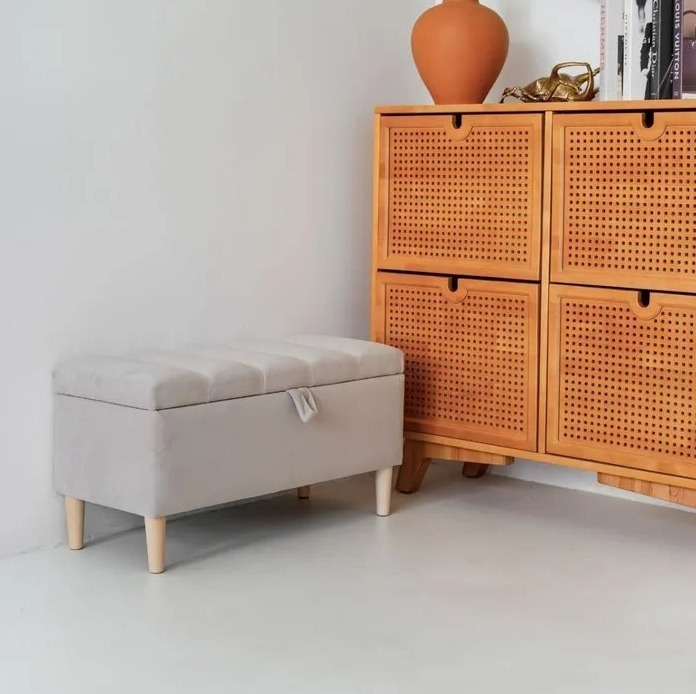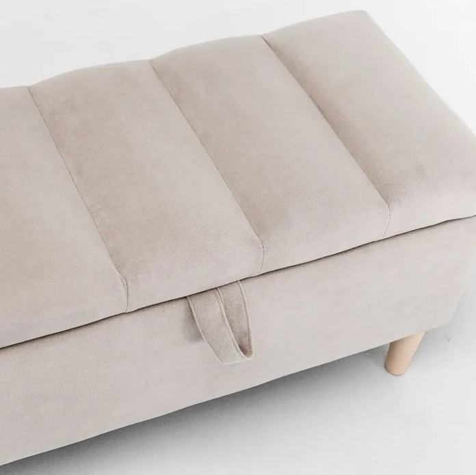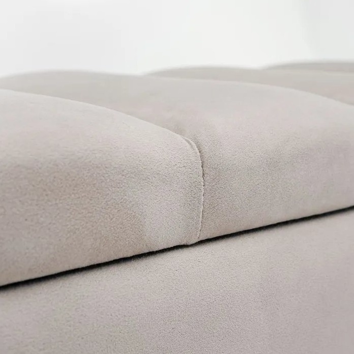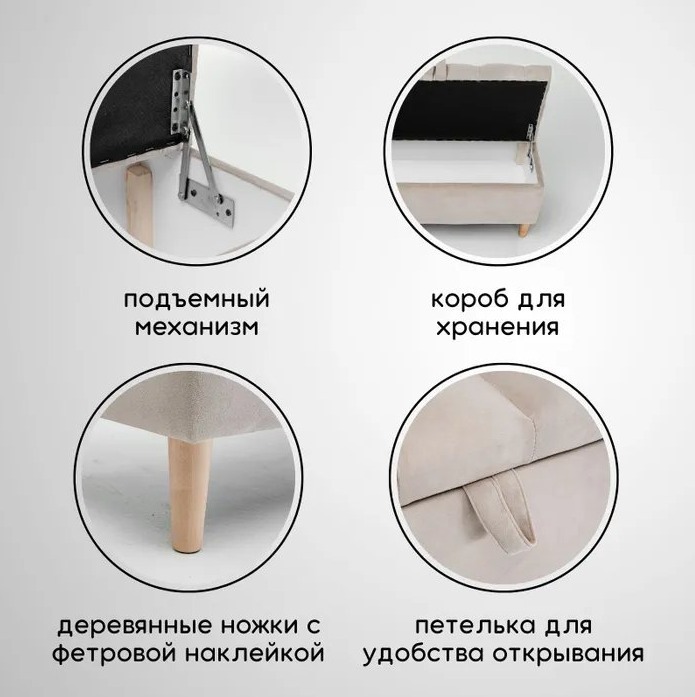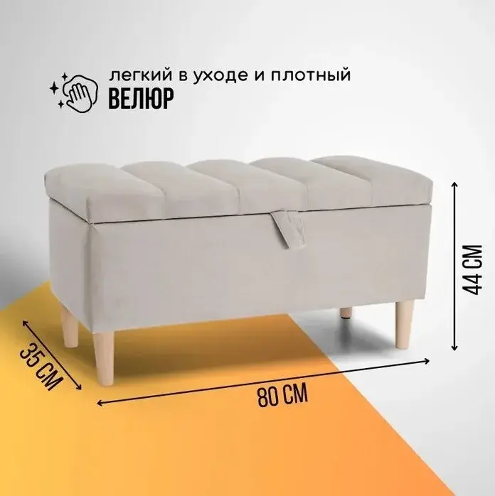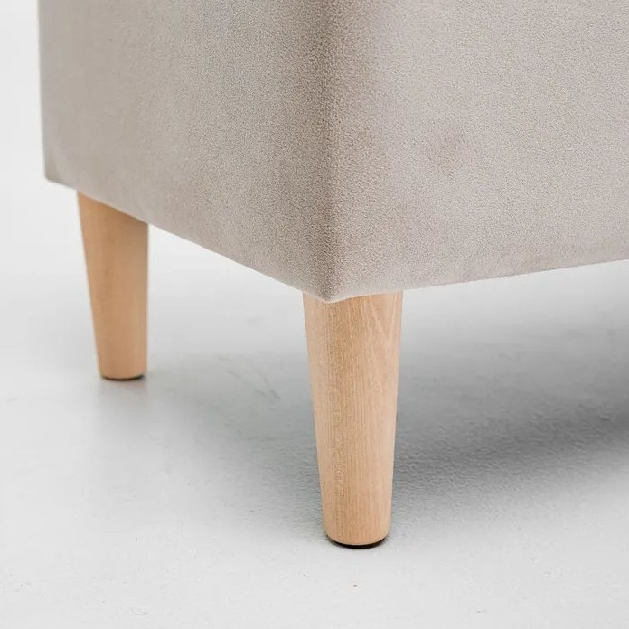Ножки выполнены из берёзы, с мягкими накладками, поэтому не царапают пол. Обивка - бархатистый велюр с влагоотталкивающей пропиткой. Высокая износостойкость (50 000 циклов), легко чистится от загрязнений.