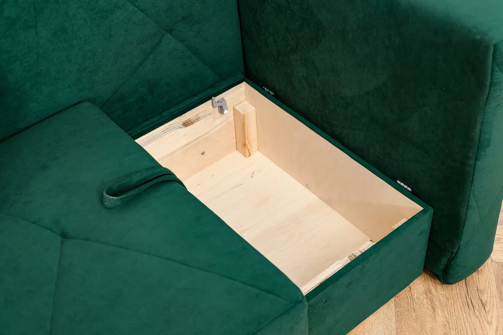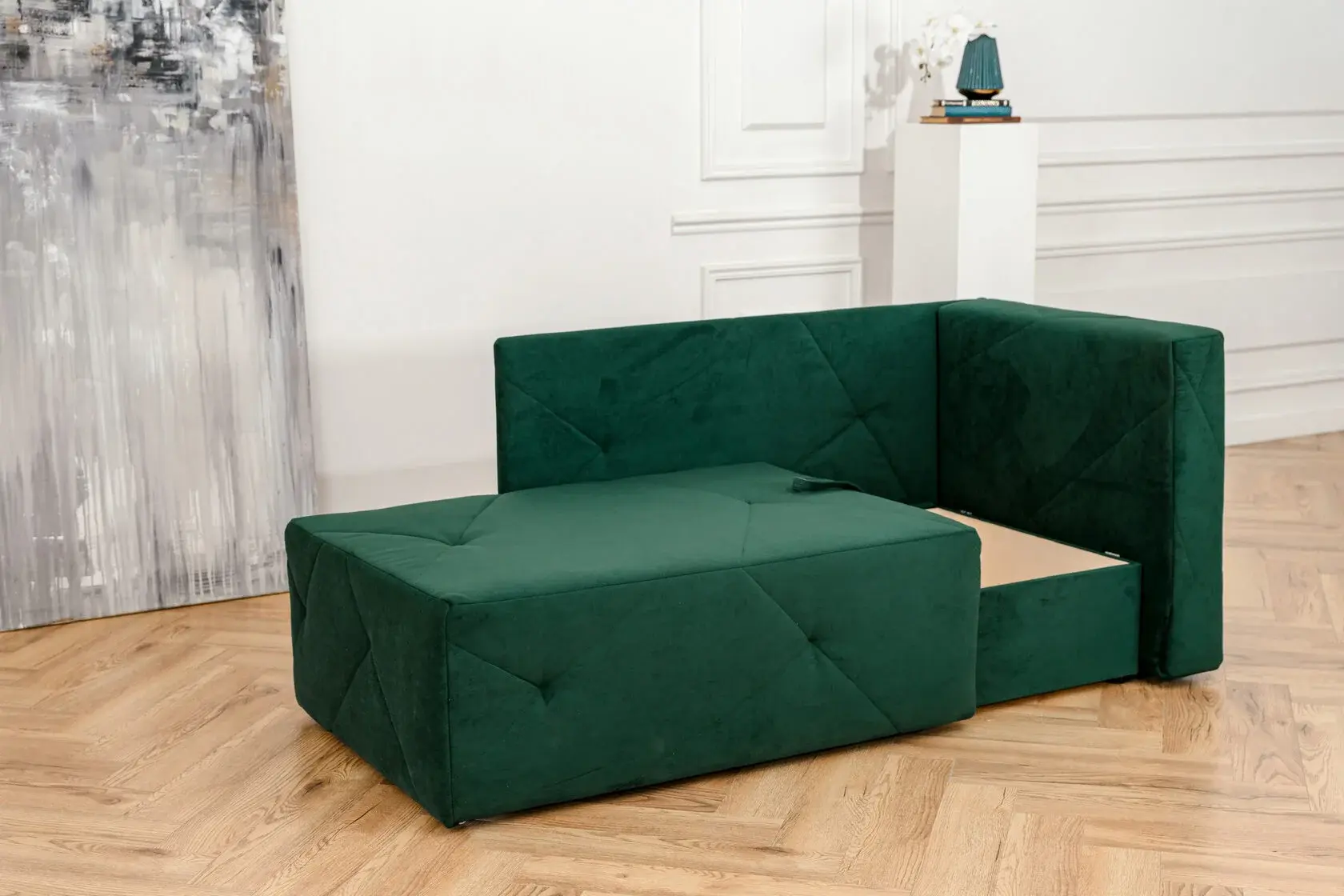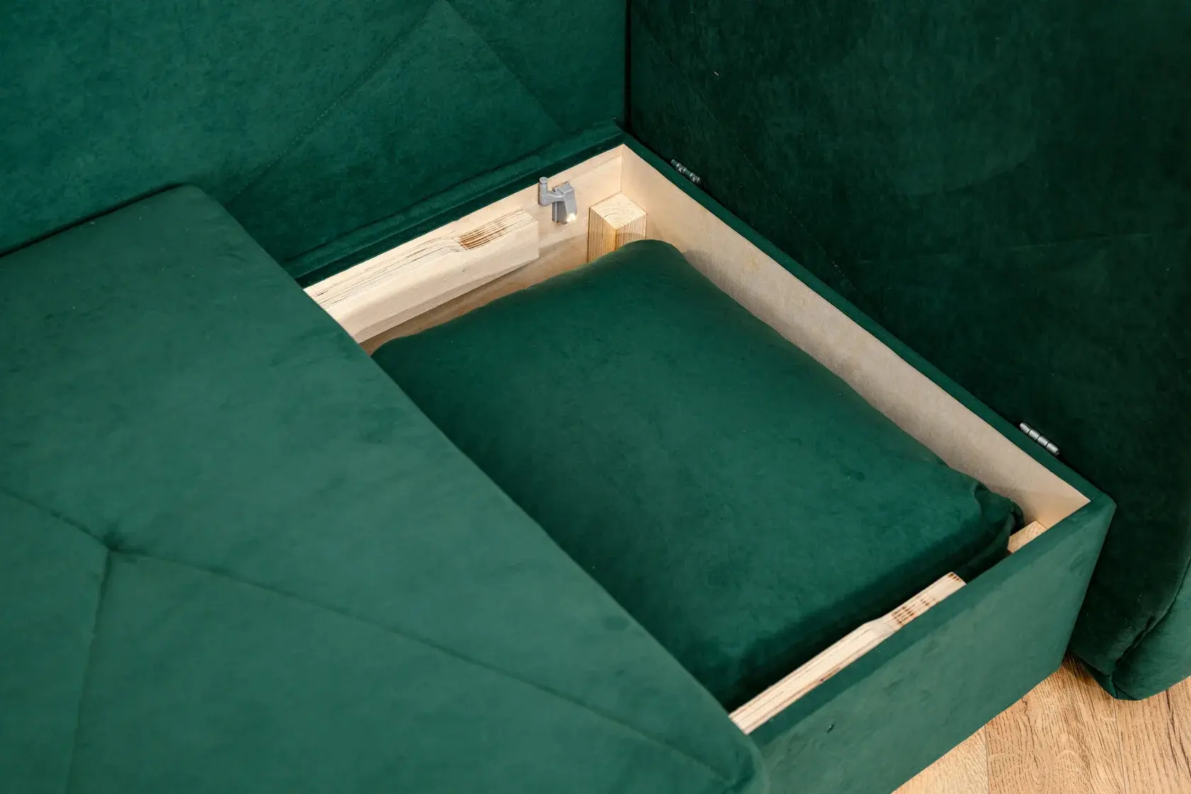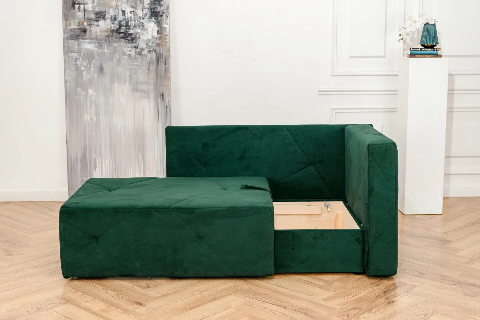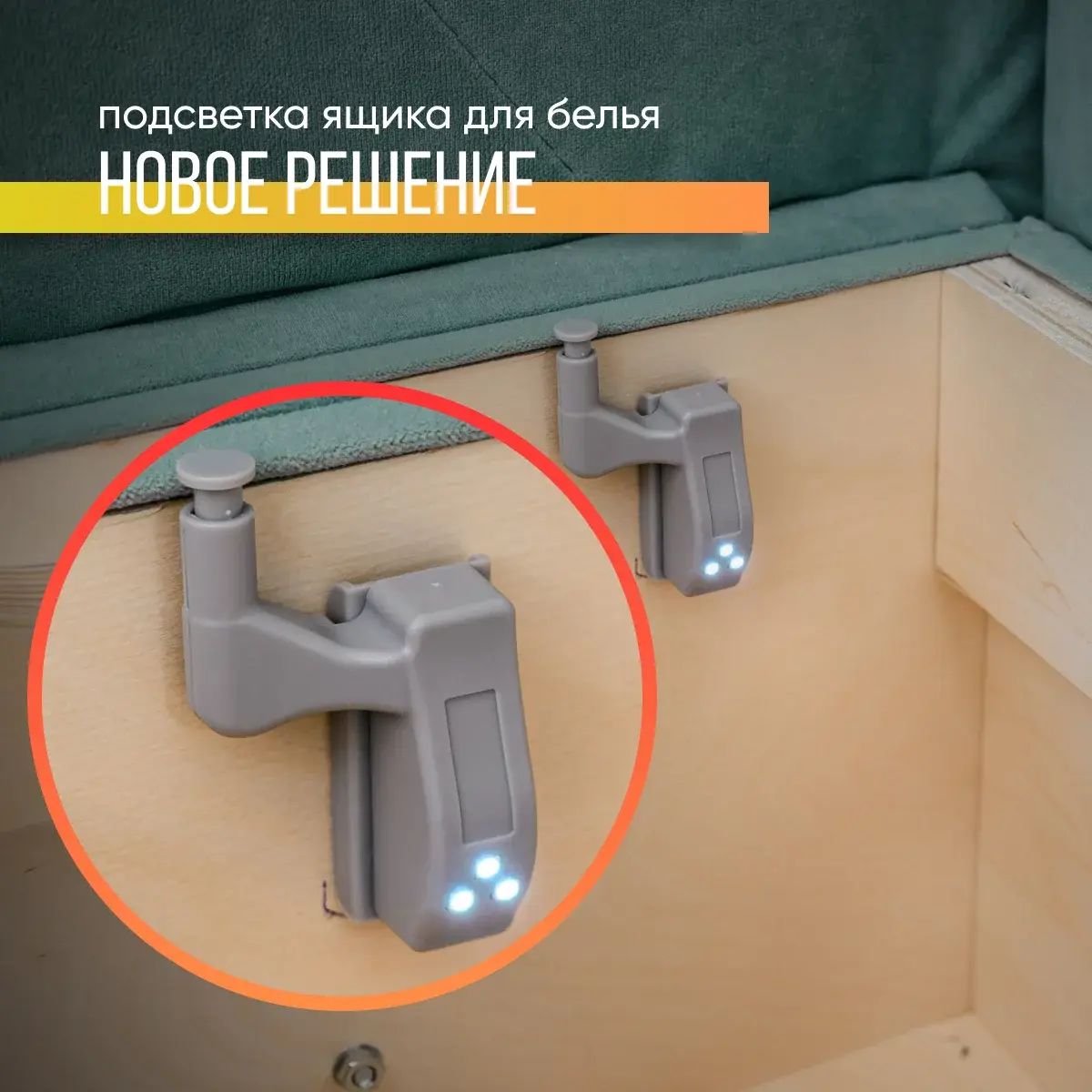 Для дополнительной функциональности раскладной диван оснащён удобным ящиком, который идеально подходит для хранения белья и поддержания порядка в комнате. Уникальность дизайна с освещением бельевого ящика поможет Вам удобно и без включения основного света достать спальные принадлежности. Свет автоматически включается при раскладке изделия. Изготавливается диван для левого и правого угла, это позволит расположить в пространстве диван по Вашему вкусу. Обновите обстановку, используя идеальное сочетание красоты и практичности, выбрав наш диван 1010!