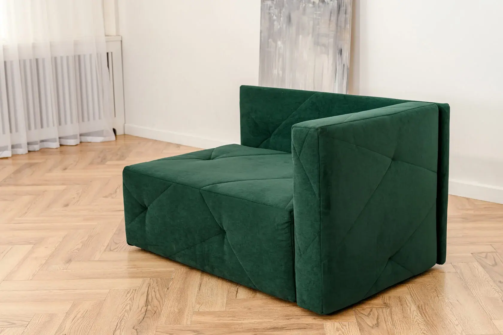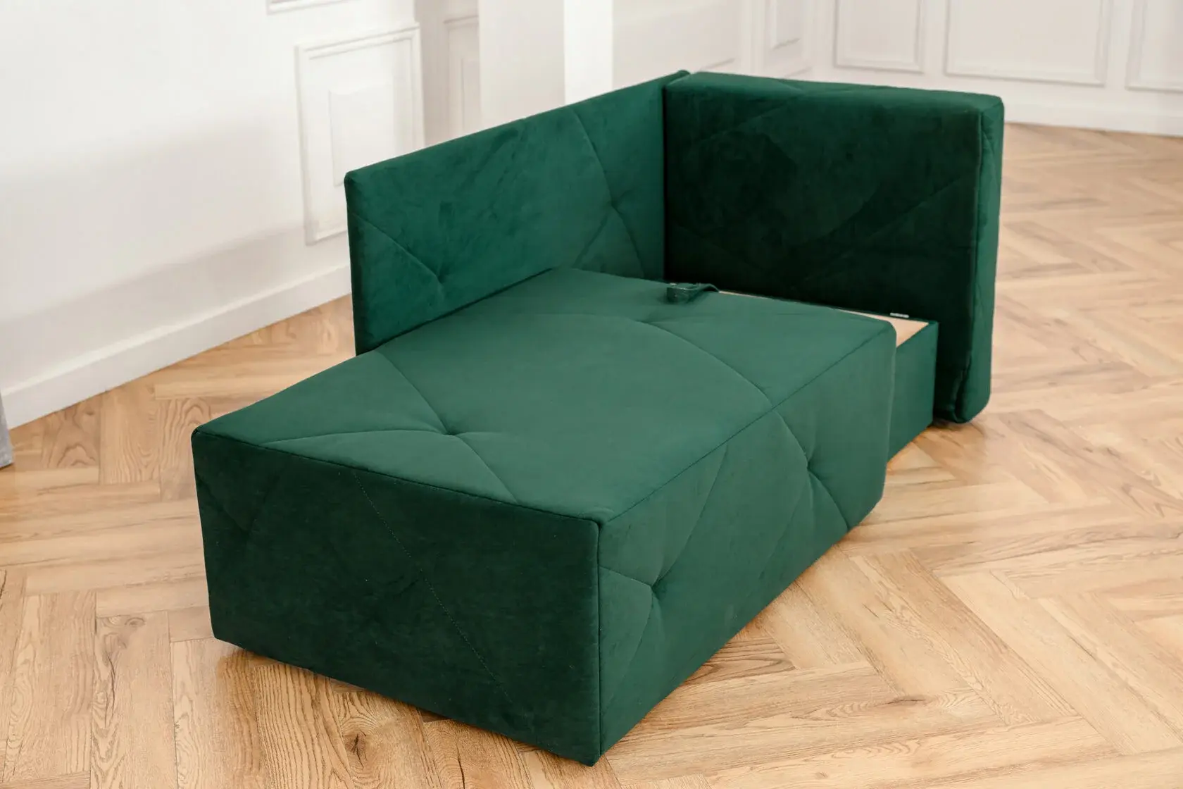 Диванчик 1010 раскладывается в полноценное одноместное спальное место лёгким и плавным шагом с механизмом Евро-книжка. Лёгкость раскладывания обеспечивают бесшумные колёса в основном блоке дивана.