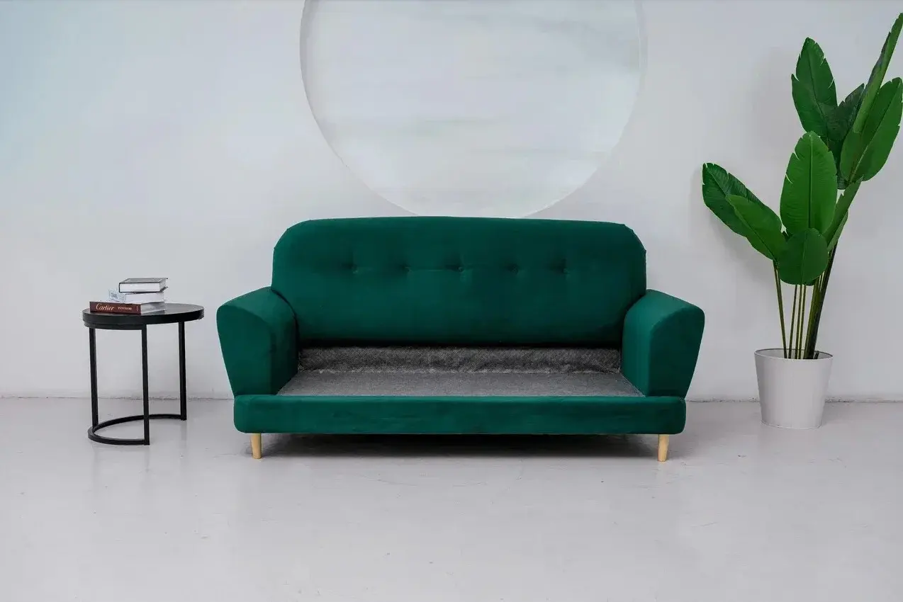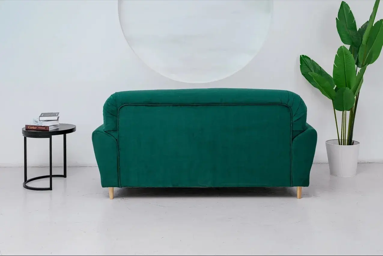 Без подменной ткани, велюром покрыта задняя спинка, что позволит использовать диван для зонирования помещения.