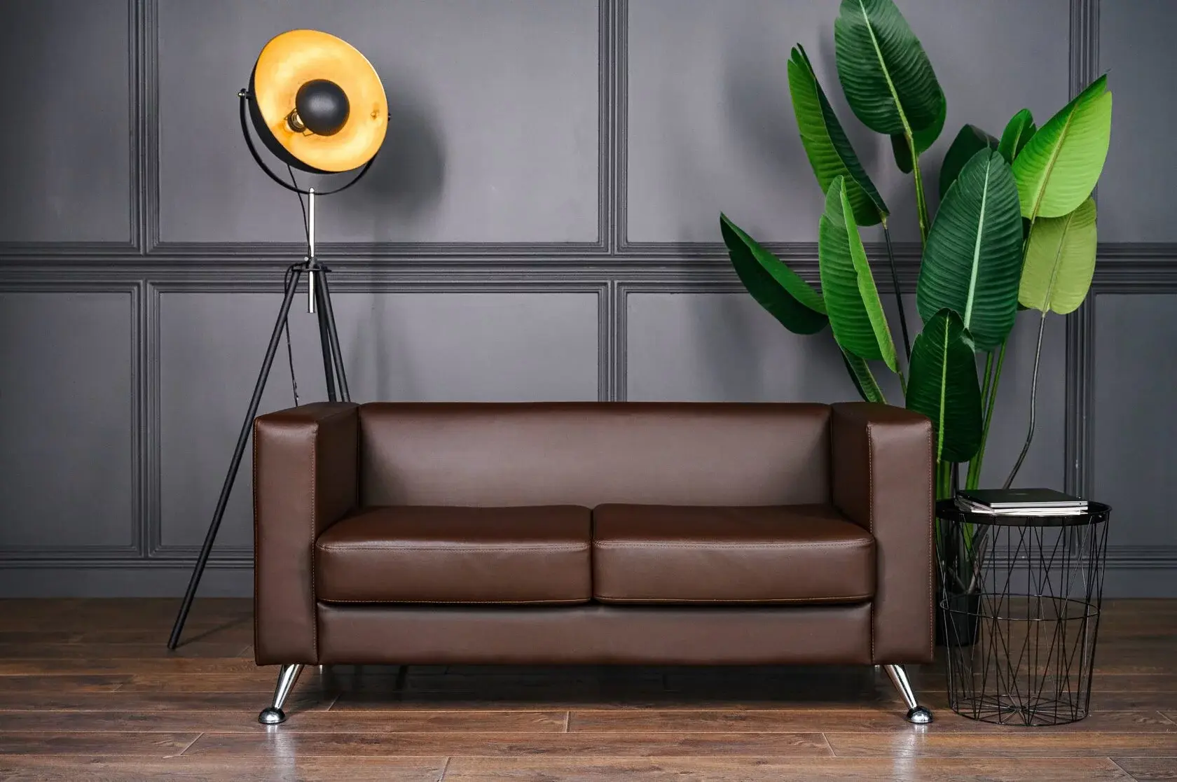 Внимание к деталям в прострочке обивки и выбор гладких металлических ножек придают элегантность общему виду.