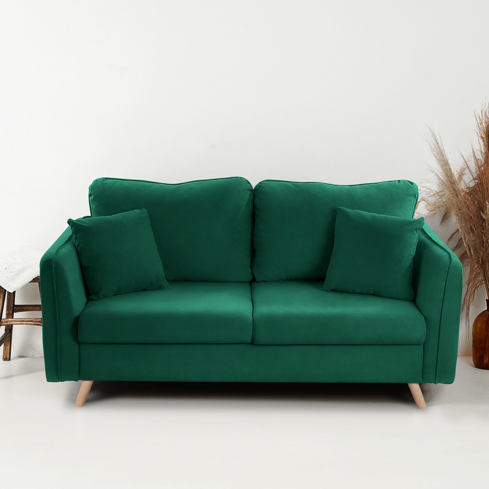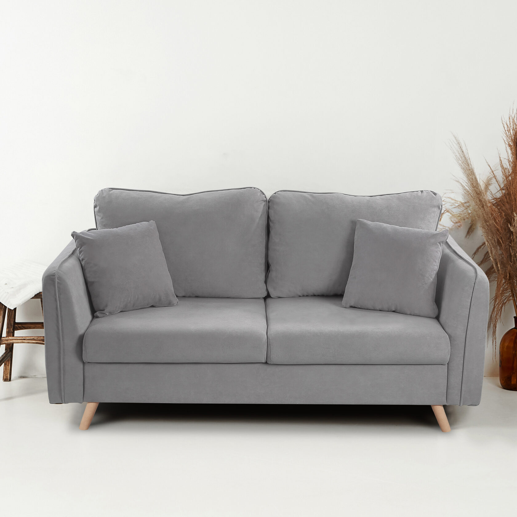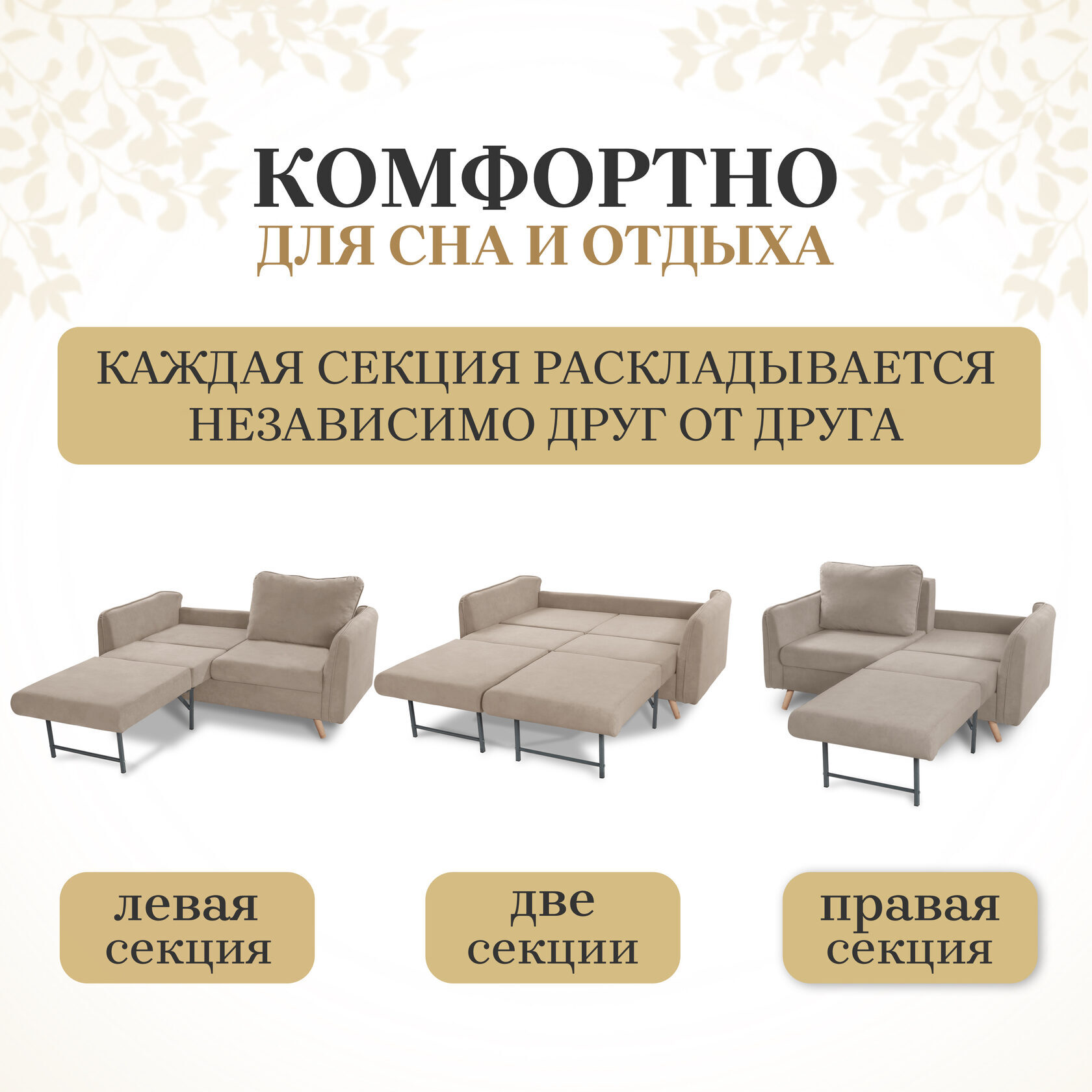 При своих компактных размерах диван очень вместительный. Он раскладывается в ровную монолитную поверхность для здорового сна, стыки между секциями не ощущаются. Для вашего удобства предусмотрены петли для раскладывания дивана. Узкие подлокотники зрительно подчёркивают его элегантность и экономят пространство. Высокие деревянные ножки с подпятниками из войлока обеспечивают защиту напольного покрытия и удобство для уборки роботу-пылесосу.
