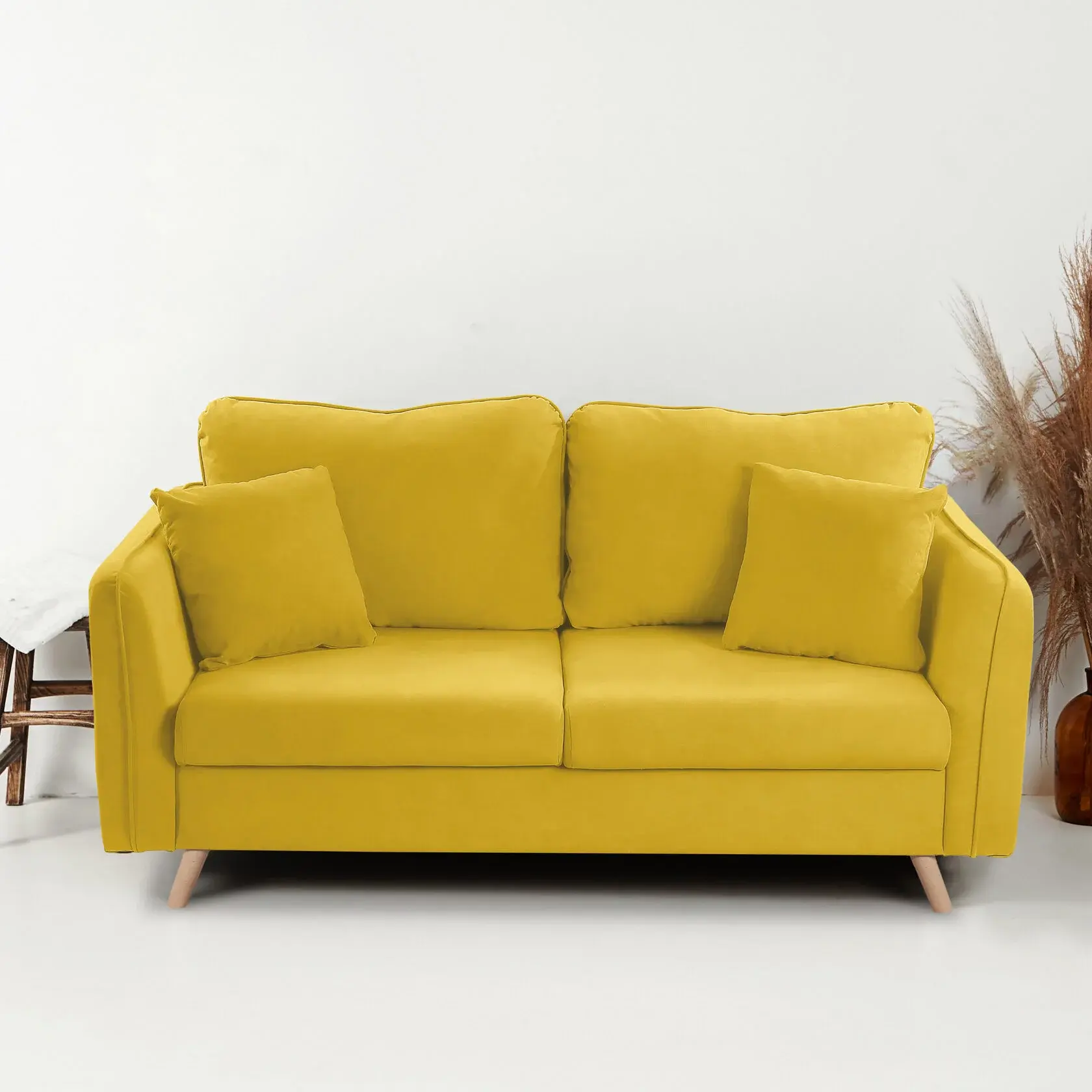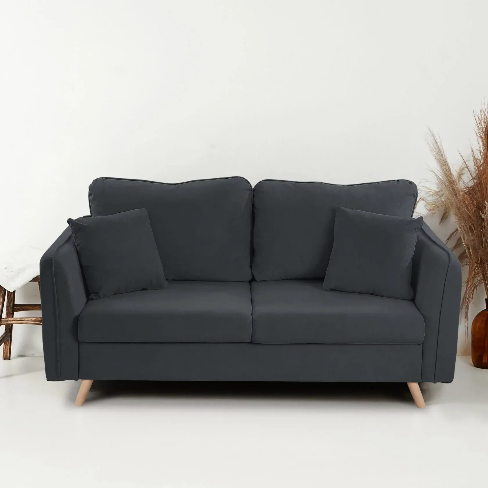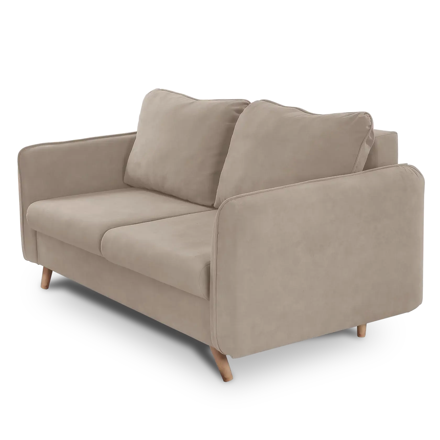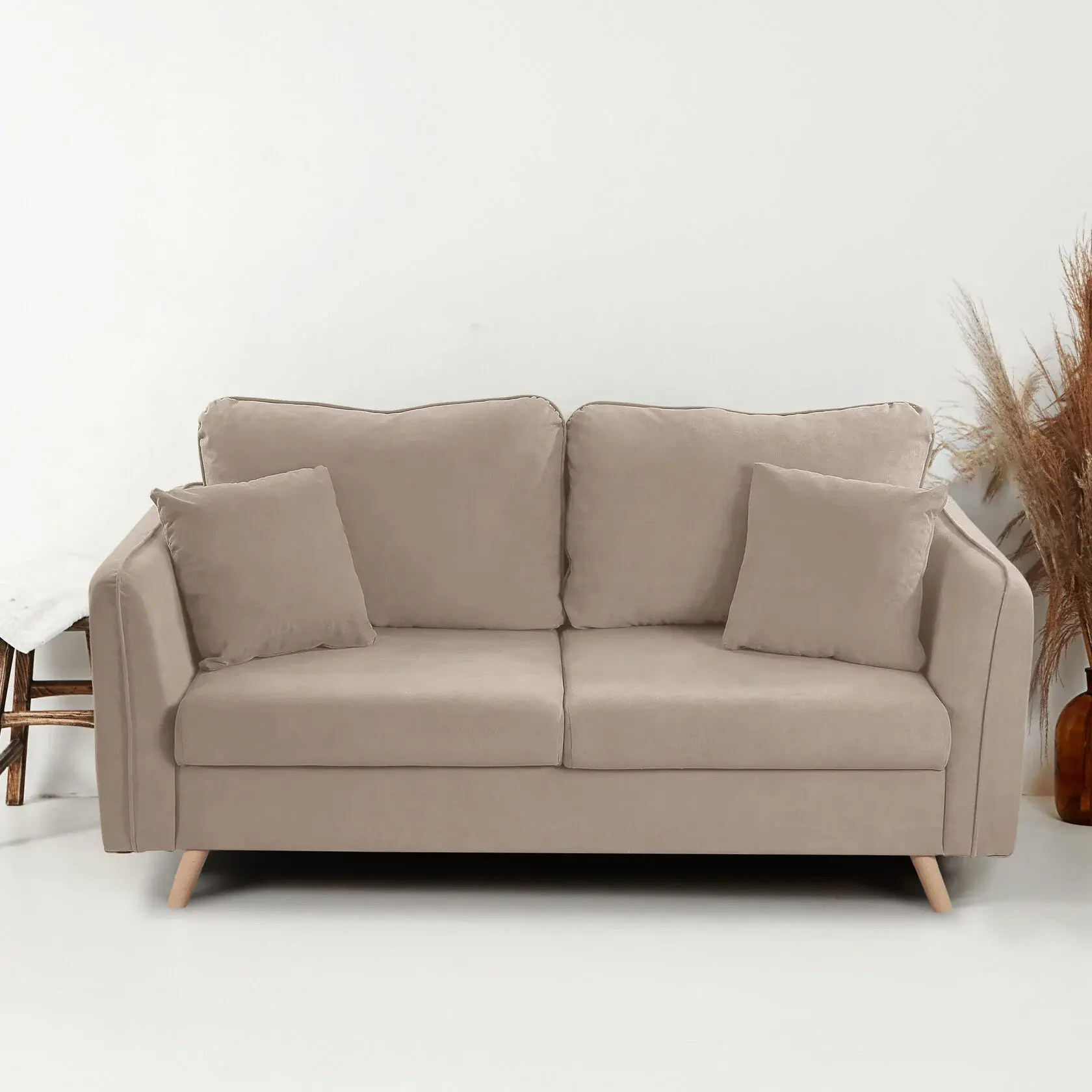 При своих компактных размерах диван очень вместительный. Он раскладывается в ровную монолитную поверхность для здорового сна, стыки между секциями не ощущаются. Для вашего удобства предусмотрены петли для раскладывания дивана. Узкие подлокотники зрительно подчёркивают его элегантность и экономят пространство. Высокие деревянные ножки с подпятниками из войлока обеспечивают защиту напольного покрытия и удобство для уборки роботу-пылесосу.