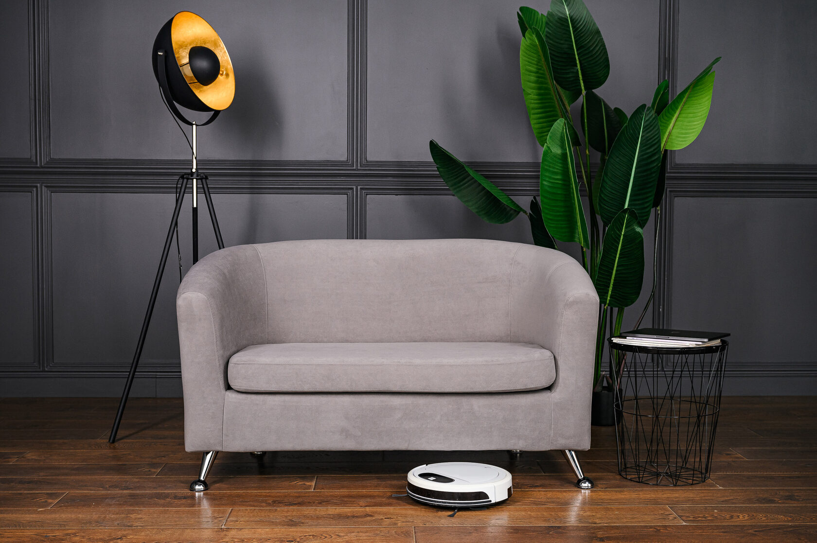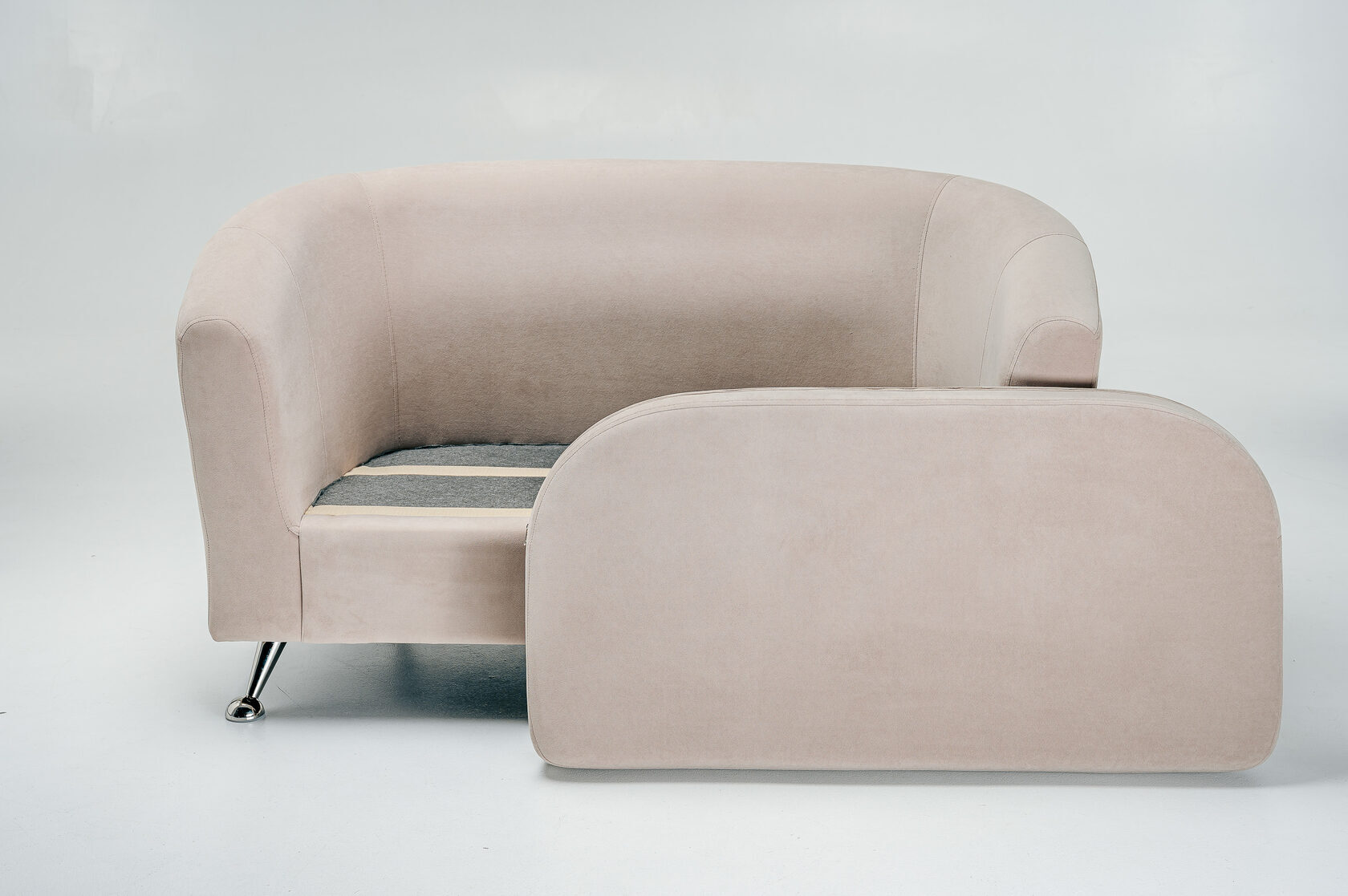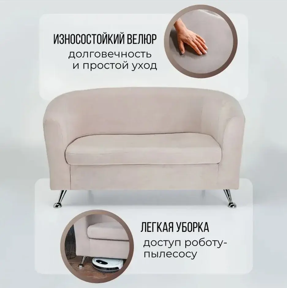 Внимание к деталям в прострочке обивки и выбор гладких металлических ножек придают элегантность общему виду.