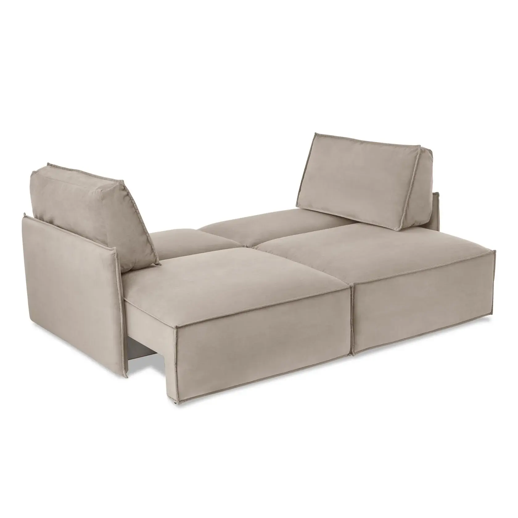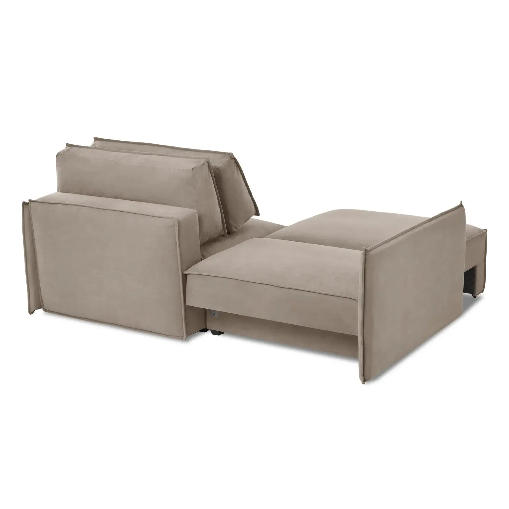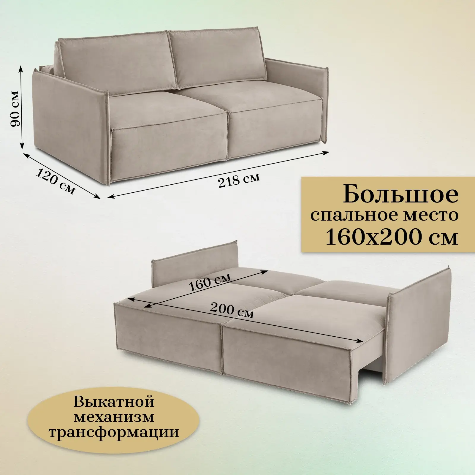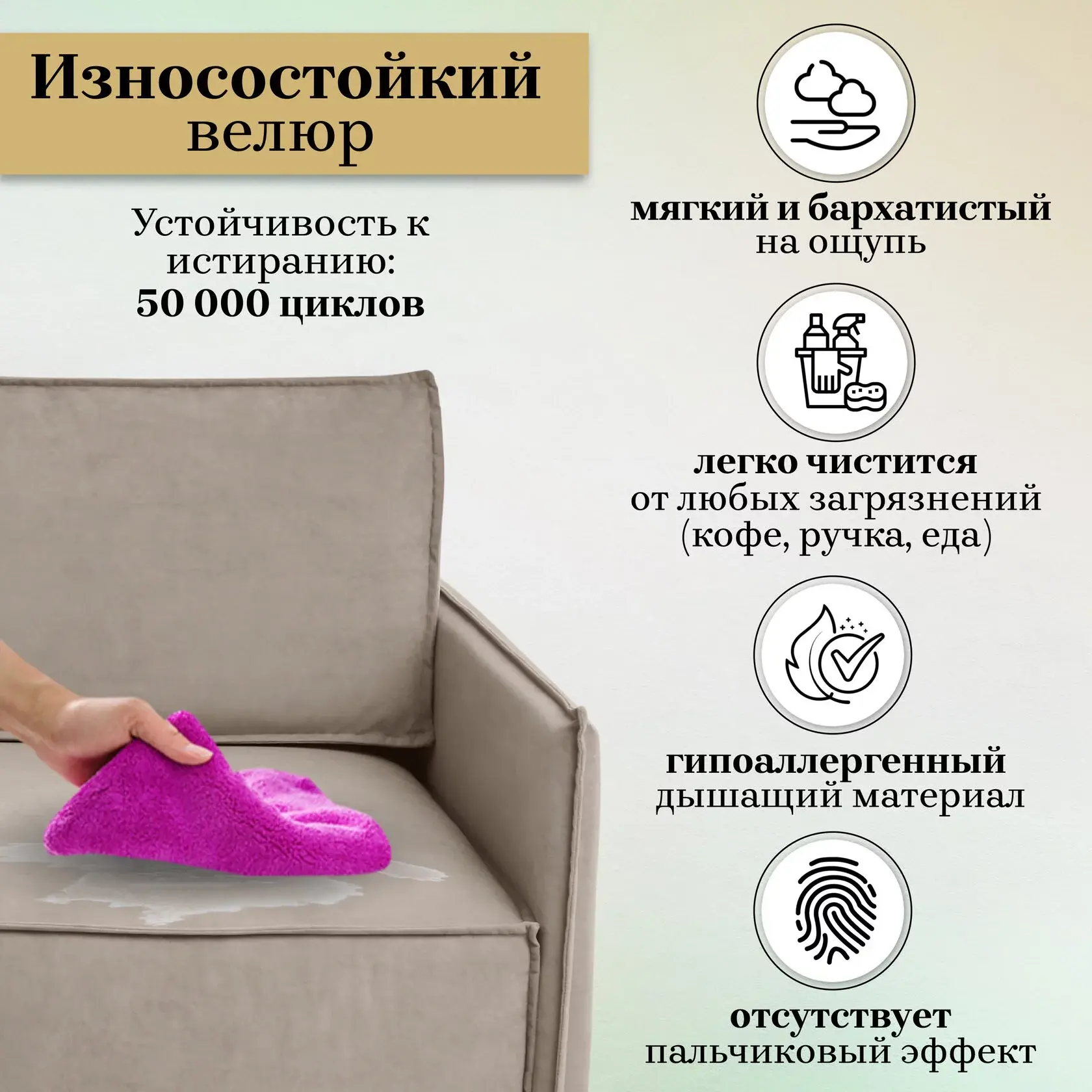 Сочетание современных материалов и мягкой обивки из износостойкого велюра делают раскладной диван максимально приятным для отдыха. Диван-трансформер раскладывается в полноценное двуспальное место и подходит для ежедневного сна.