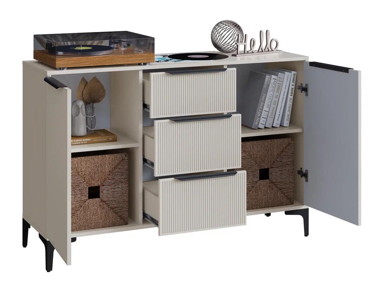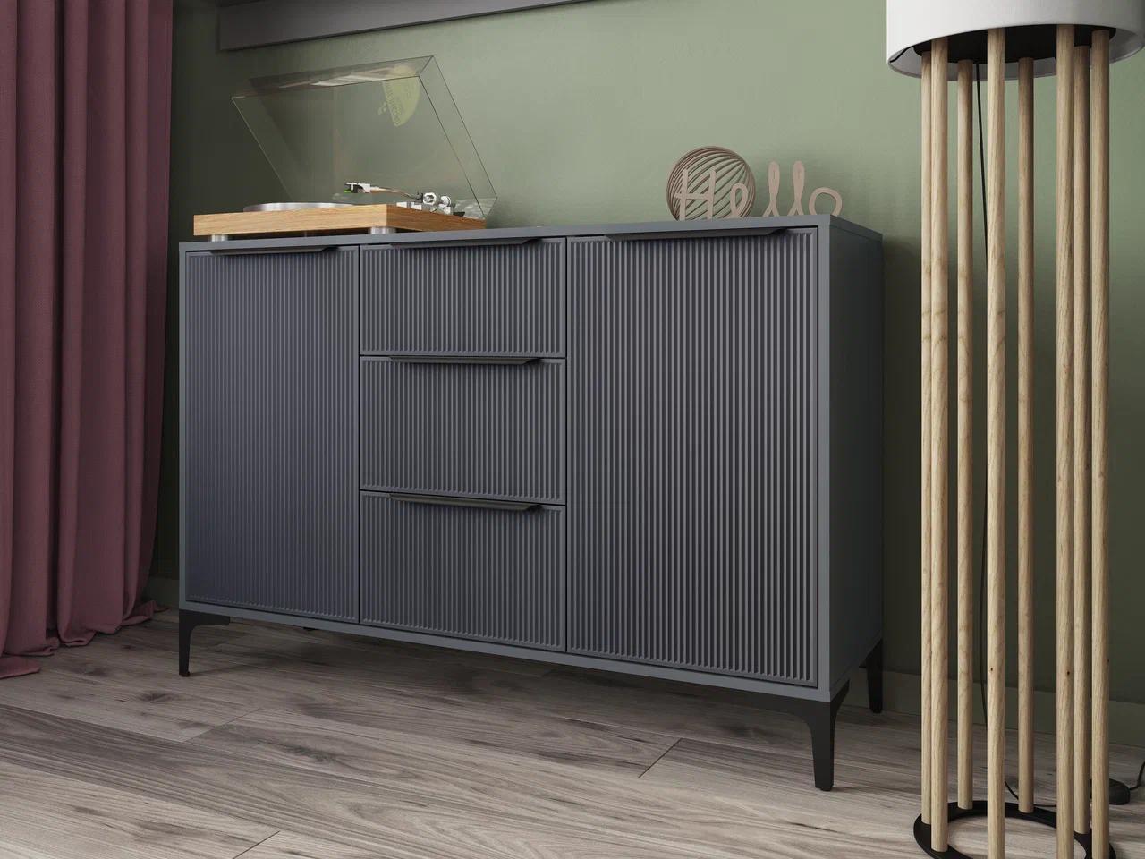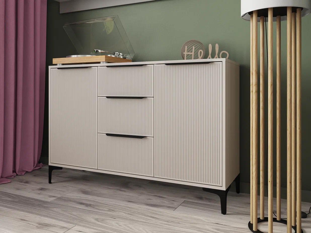 Гладкая поверхность фасада из прочного МДФ и устойчивый каркас из качественного ЛДСП подарят интерьеру аккуратность и завершенность. Металлическая ручка и элементы конструкции подчеркивают прочность и долговечность изделия. Полное выдвижение ящиков благодаря направляющим обеспечивает комфортную эксплуатацию даже самых дальних уголков шкафа!