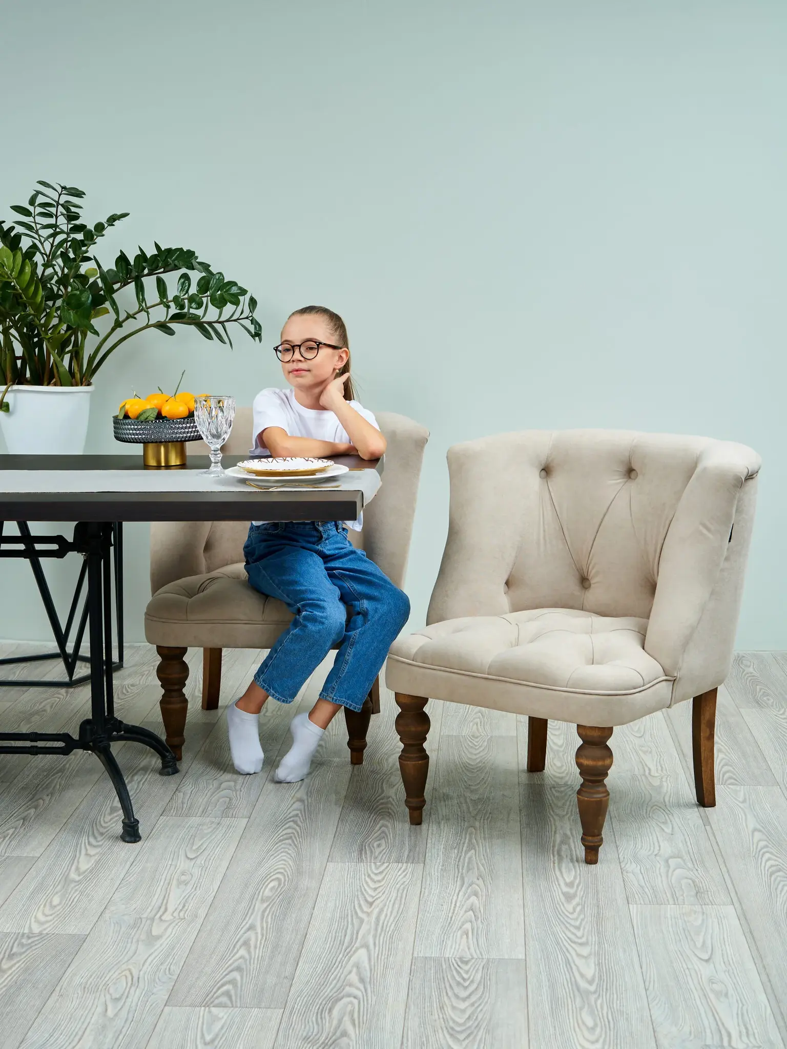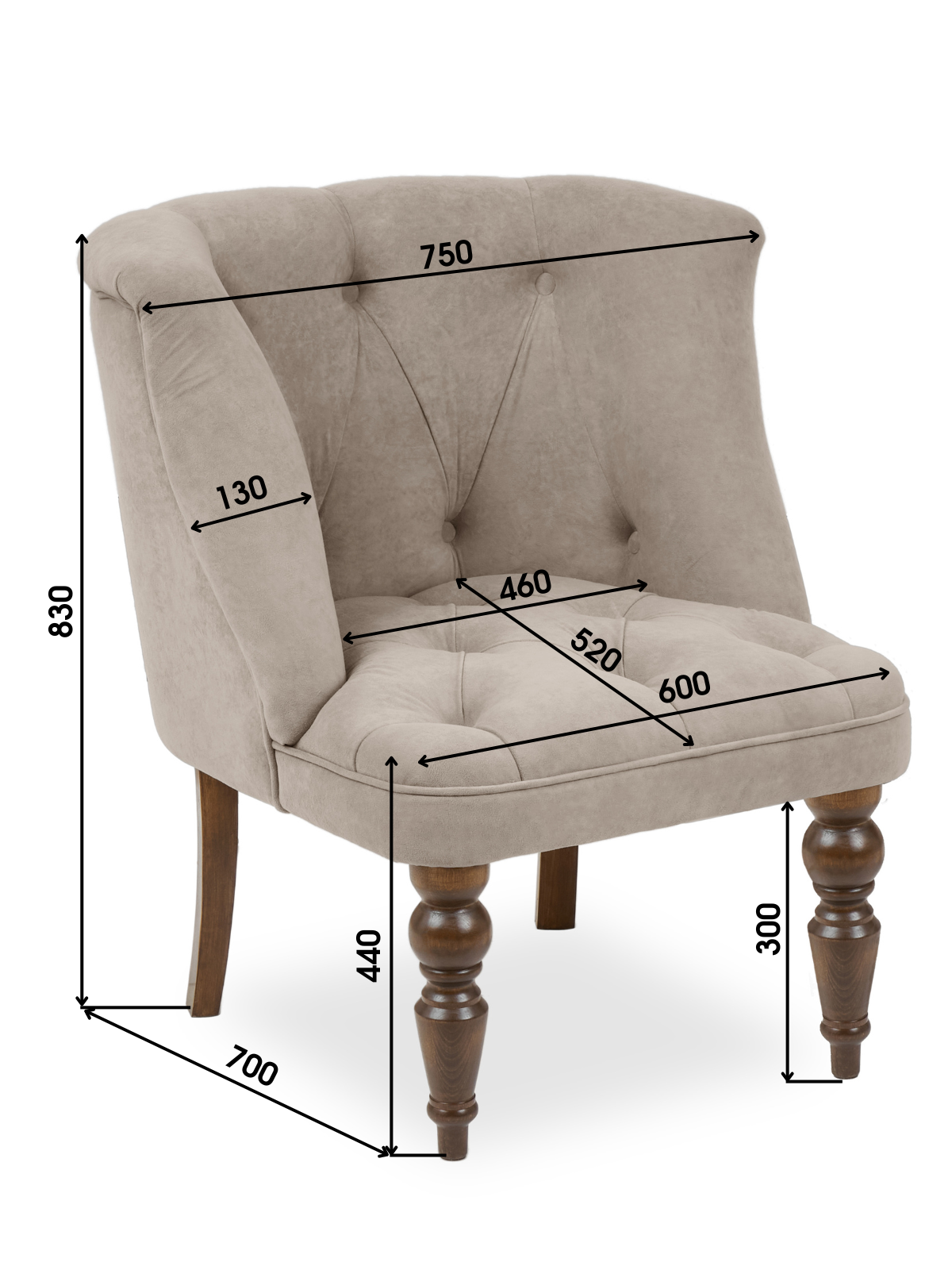 Обивка из бархатистого велюра с влагоотталкивающей пропиткой, высокой износостойкостью, её легко чистить. Кресло прекрасно подойдёт для небольших помещений: компактной кухни, детской, коридора, комнаты, кабинета, офиса, фойе. Такое кресло никого не оставит равнодушным.