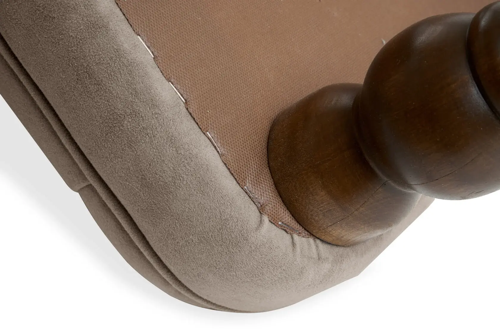 Каркас изготовлен из массива дерева хвойных пород и берёзовой фанеры, наполнитель – пенополиуретан, что означает повышенную прочность и службу на долгие годы. У кресла изящные передние резные ножки из натурального дерева (бук).