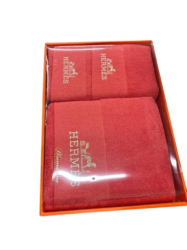 Подарочный набор маховых полотенец от французского бренда Hermes, премиум класса. В комплект входит 1 полотенце для тела и 2 для лица. Махровые полотенца высокой плотности, очень мягкие на ощупь и приятные к телу. Сделаны из натурального хлопка.