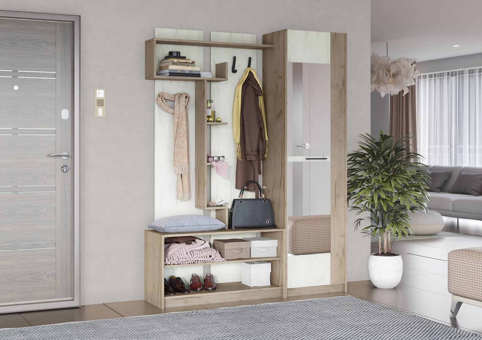 Прихожая «Марица» — это модульная прихожая, изготовленная из ламинированного ДСП с фасадами со стеклянным декором и фотопечатью. В комплектацию входят вешалка, пенал с зеркалом, пенал, тумба для обуви, зеркало.