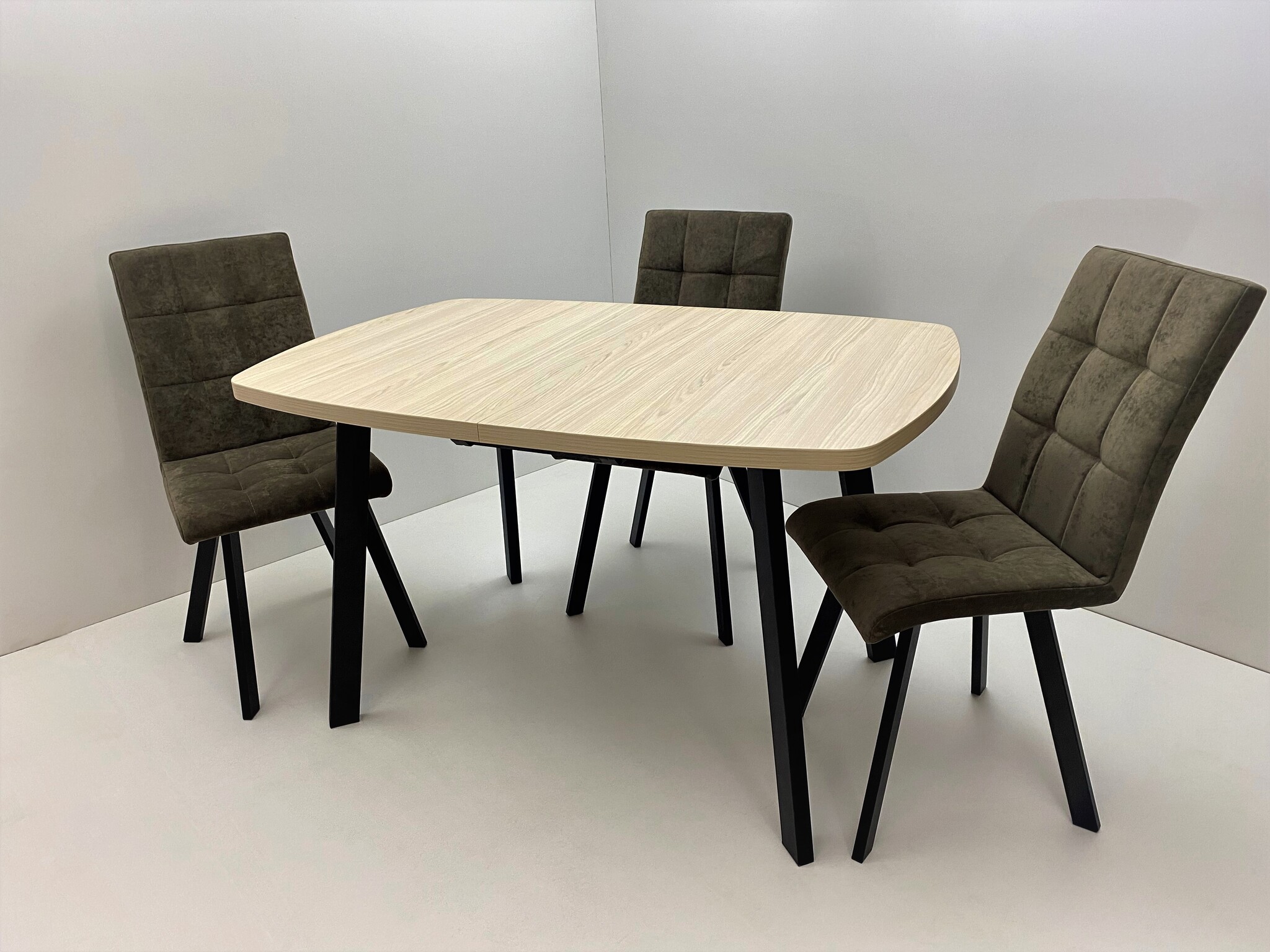 Раздвижной полуовальный стол. Столешница выполнена из влагостойкого ЛДСП толщиной 26мм. Раздвижкой механизм "бабочка". Комплектуется металлической ножкой