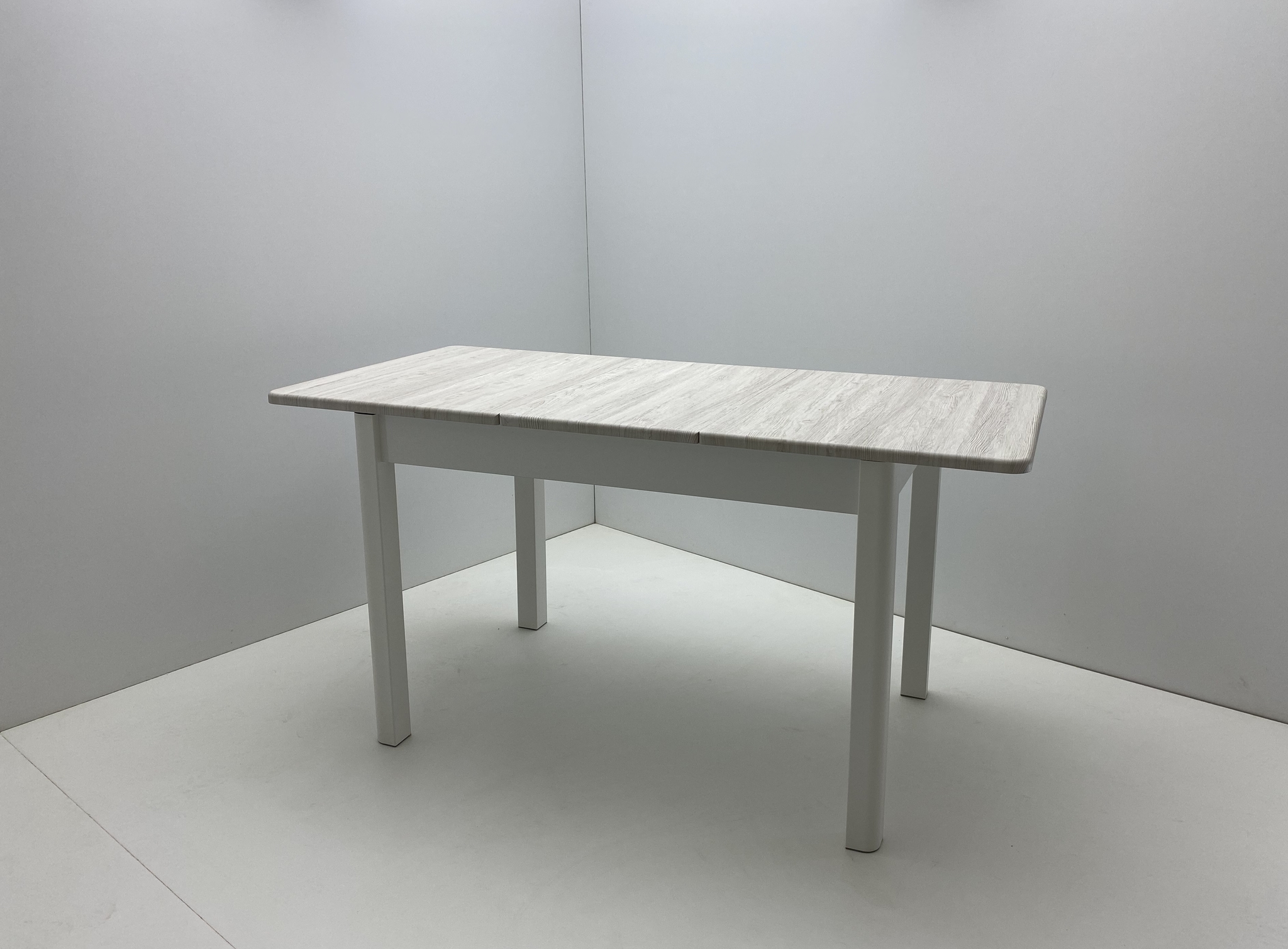 Раздвижной прямоугольный стол. Столешница выполнена из ЛМДФ и покрыта пленкой ПВХ. Вкладка центральная. Комплектуется металлической ножкой.
