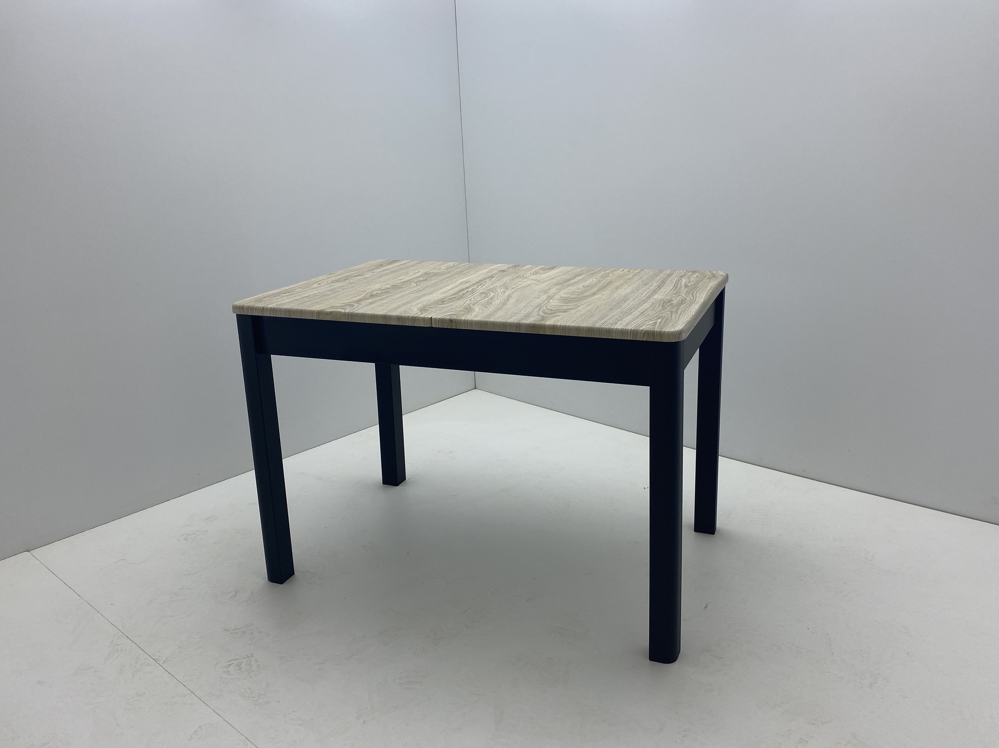 Раздвижной прямоугольный стол. Столешница выполнена из ЛМДФ и покрыта пленкой ПВХ. Вкладка центральная. Комплектуется металлической ножкой.
