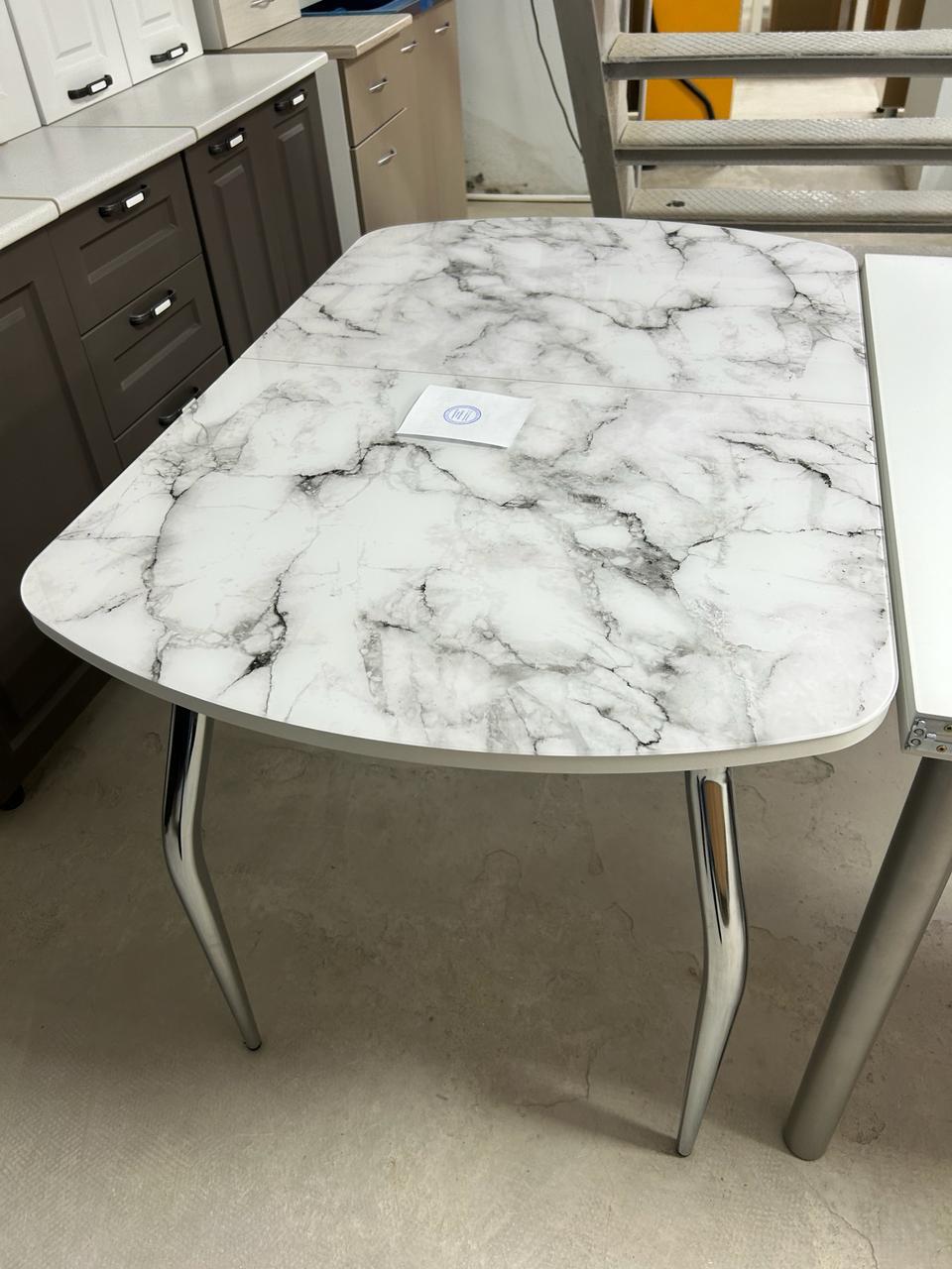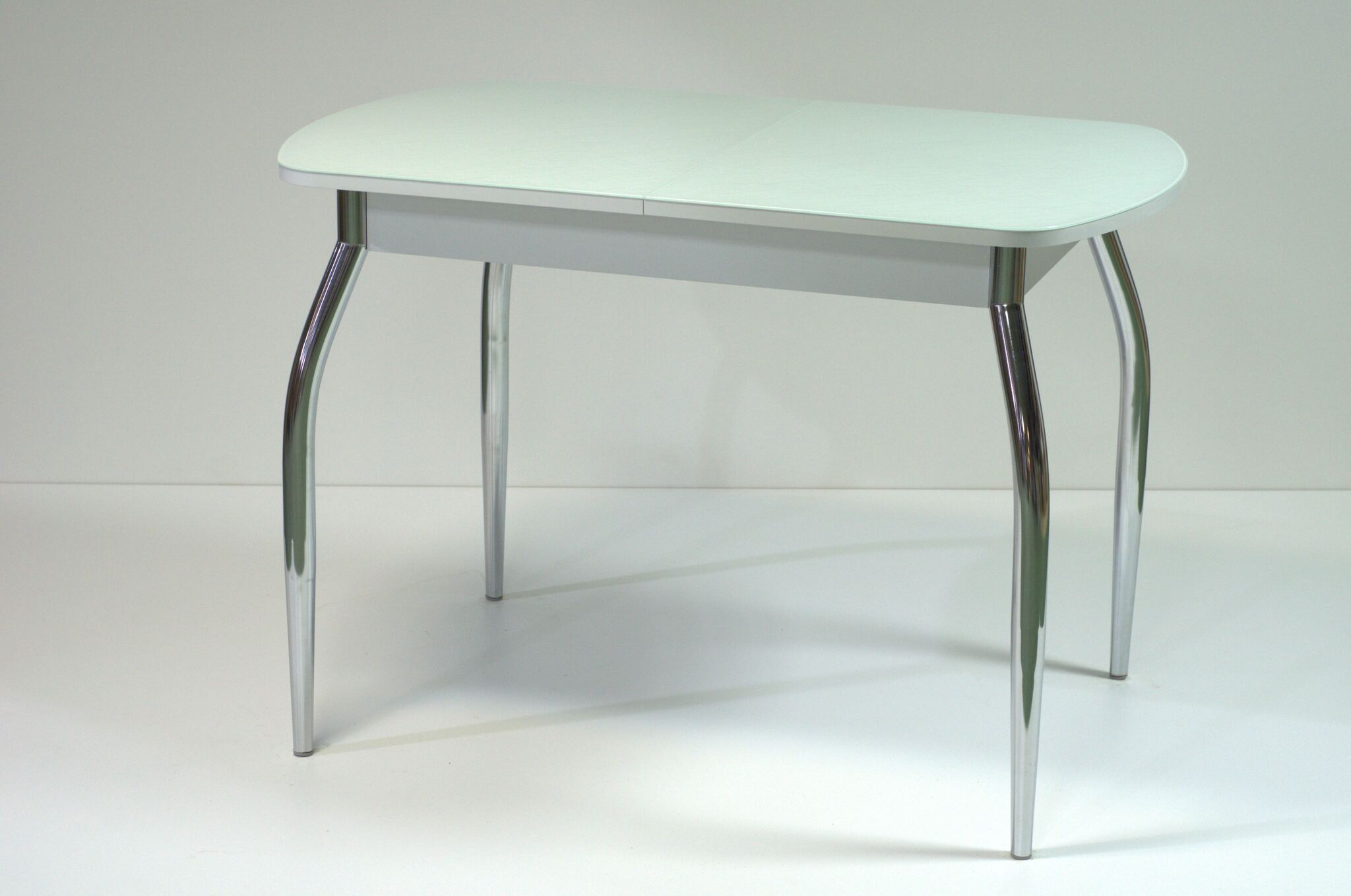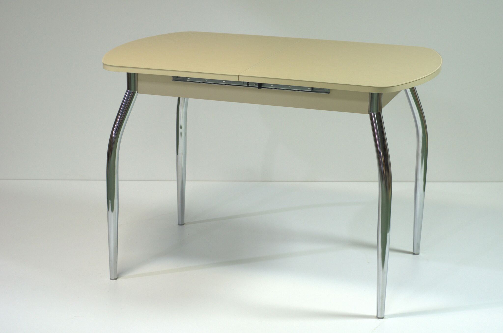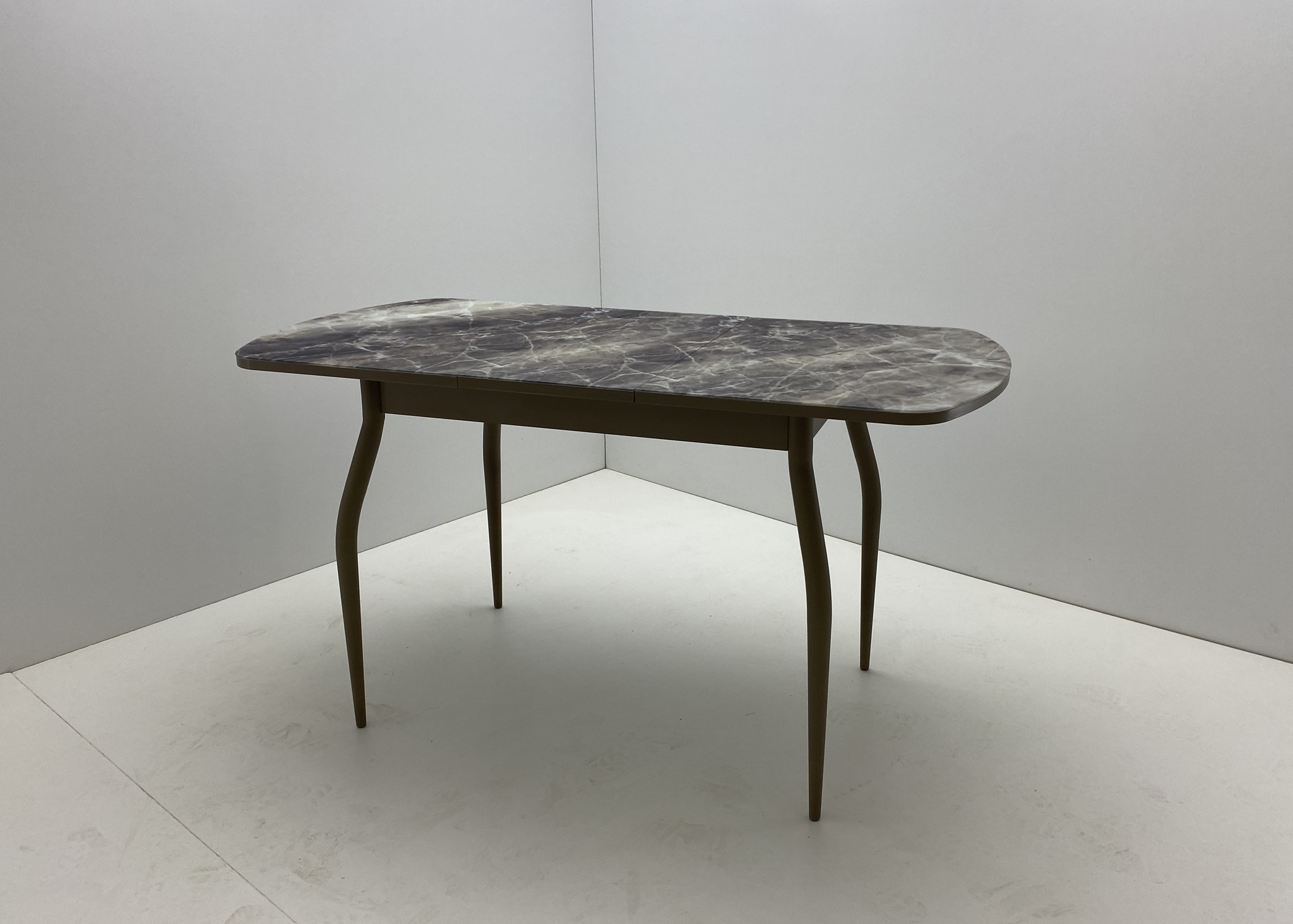 Столешница выполнена из ЛМДФ, покрытого плёнкой ПВХ с закаленным стеклом. Подстолье из металла с полимерным покрытием. Боковой раздвижной механизм.