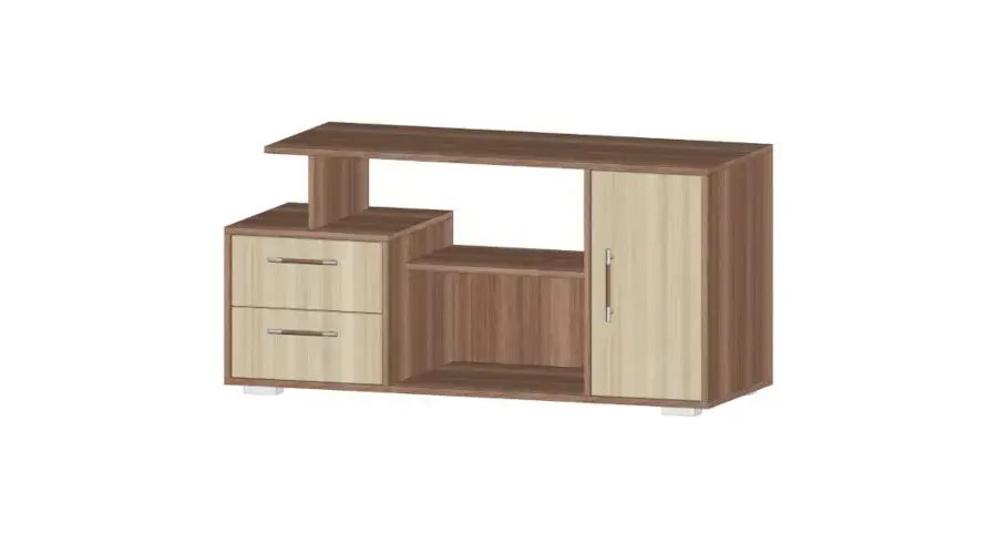 ТВ тумба Лацио ясень шимо комб. Габариты 1200(Ш) х 440(Г) х 584(В) мм. Материал ЛДСП. Кромка ПВХ. Роликовые направляющие. Регулируемые по высоте опоры. Универсальная сборка на любую сторону.