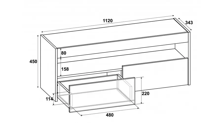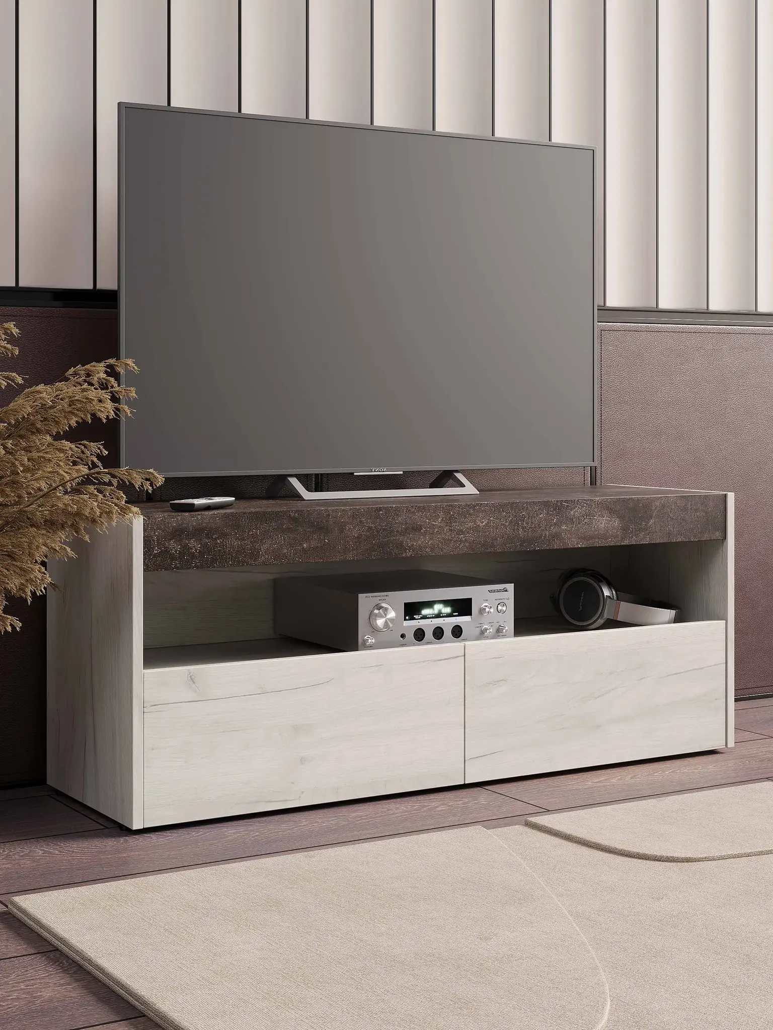 ТВ тумба Вегас Дуб Крафт Белый/Ателье темн. Габариты 1120(Ш) х 343(Г) х 450(В) мм. Материал ЛДСП. Кромка ПВХ. Направляющие полного выдвижения. Универсальная сборка на любую сторону. Надежная упаковка Количество упаковок в изделии: 1 шт.
